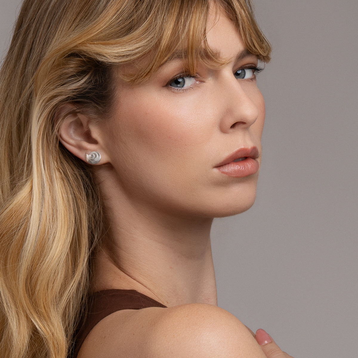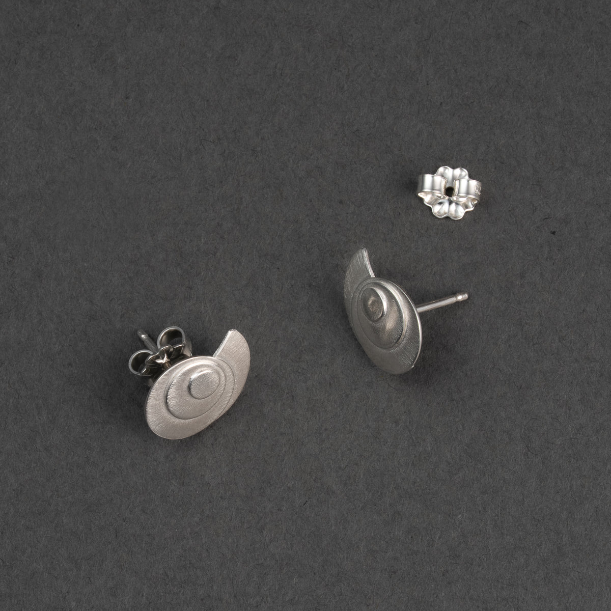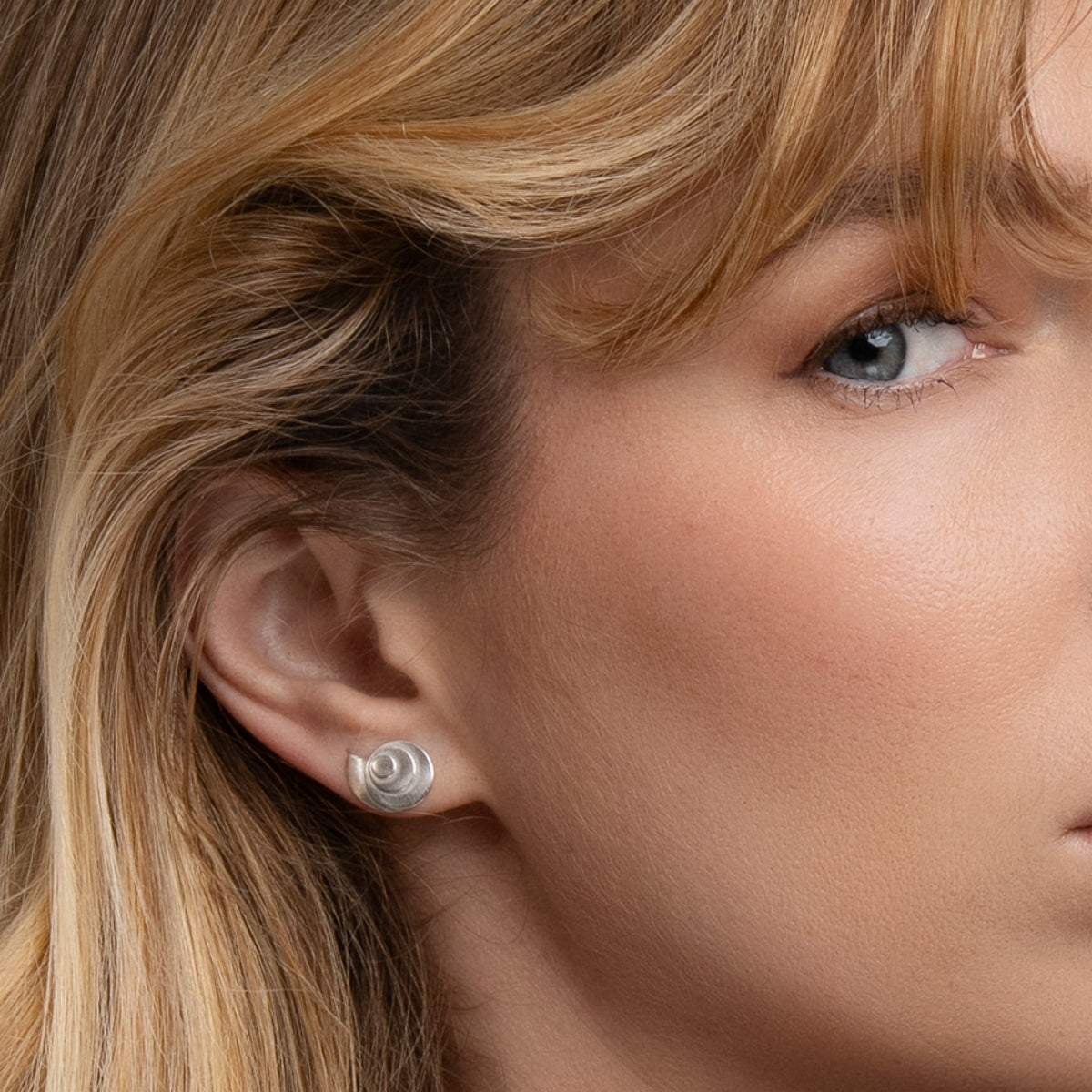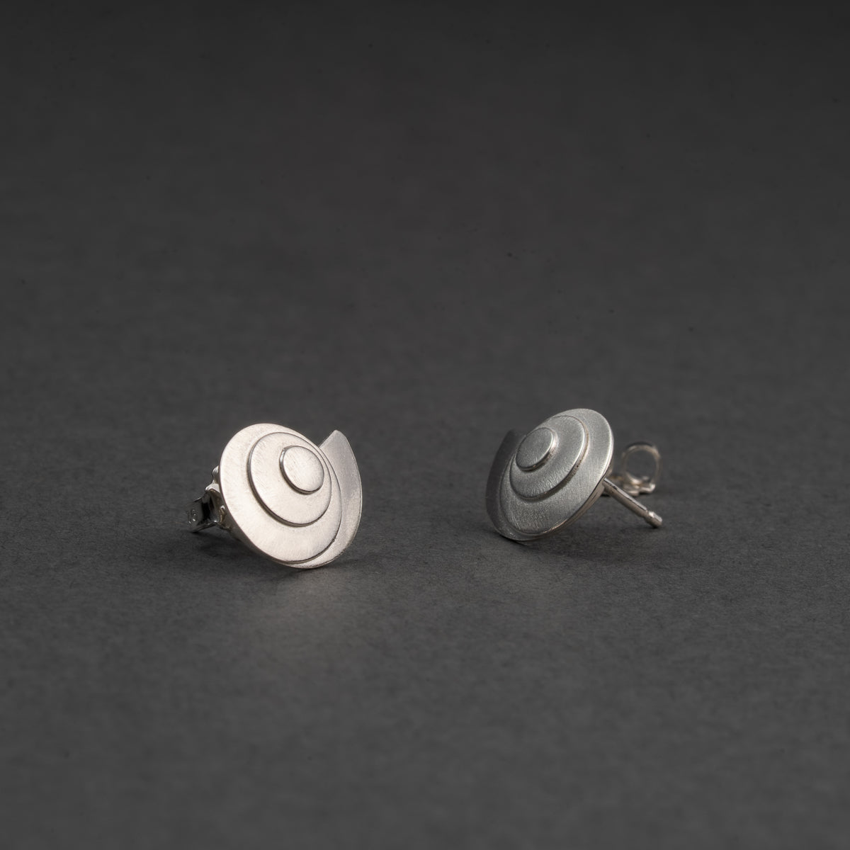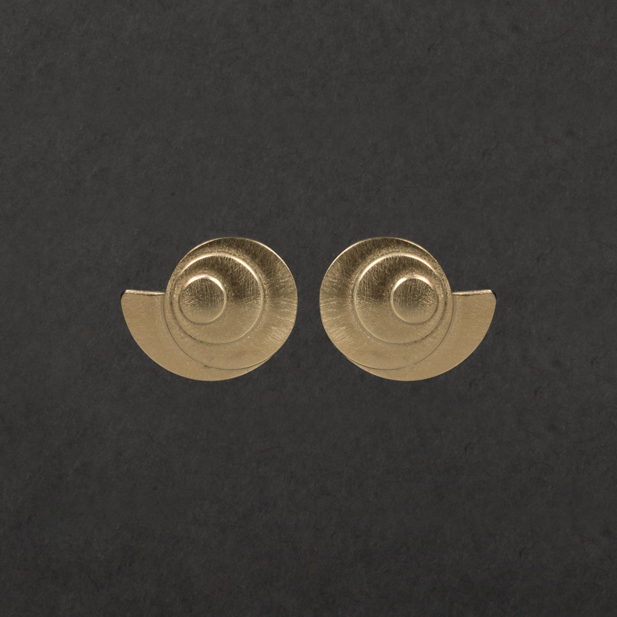 Make a statement with these low-profile studs. Modeled after the natural expression of the Fibonacci Sequence or the Golden Ratio in the nautilus shell. They have a delicate matte texture, creating a luminous aura like the light at dusk or dawn. The mirror image design is 1/2" wide and 3/8" tall.