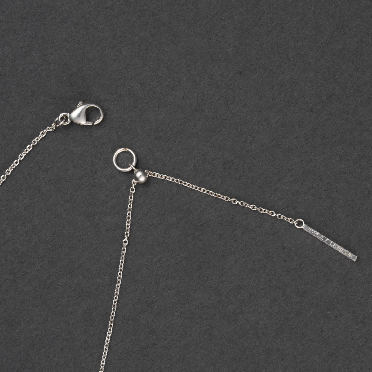 The pendant is 1 1/8" long and 5/8" wide and slides along a delicate silver cable chain. The clasp also slides along the chain making it completely adjustable up to its full length, making this pendant perfectly fit any neckline or layer nicely with other necklaces.